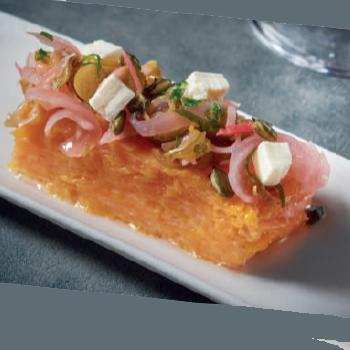 Milfulls de carbassa amb confitats i formatge feta