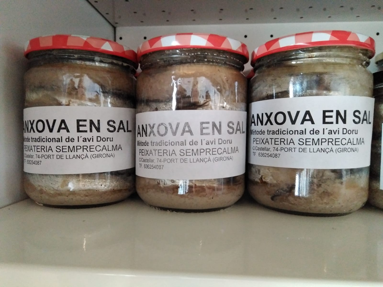 Anxova confitada en sal i pebre, entre 25-26 unitats, amb un mínim de entre 4 i 6 mesos de maduració, el·laborat a casa, de marera tradicional, tal i com ho feien els nostres avis.