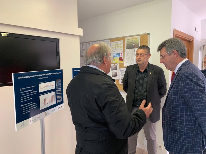 El president de la Diputació de Girona i del Consorci d'Aigües Costa Brava Girona, Miquel Noguer, i l'alcalde de Castelló d'Empúries, Salvi Güell, han presentat aquest dimarts al matí la planta solar fotovoltaica que s'ha instal·lat a l'estació depuradora d'aigües residuals (EDAR) de Castelló d'Empúries, situada a Empuriabrava. El propòsit d'aquesta actuació és fer un pas endavant cap a l'autosuficiència energètica de la planta i contribuir a una millor sostenibilitat ambiental.
