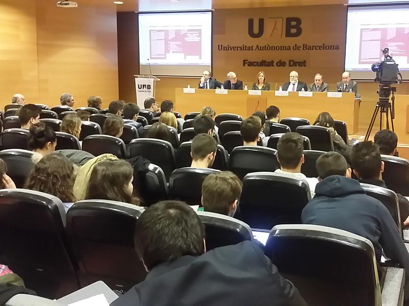 Els presidents de les quatre diputacions catalanes, Salvador Esteve (Barcelona), Joan Reñé (Lleida), Josep Poble (Tarragona) i Joan Giraut (Girona) han participat aquest matí en la inauguració del congrés “1914-2014: la petja de la Mancomunitat de Catalunya” que organitza la Càtedra Enric Prat de la Riba d’Estudis Jurídics Locals de la Universitat Autònoma de Barcelona (UAB). L’acte inaugural, que s’ha celebrat a l’Aula Magna de la Facultat de Dret, a Bellaterra, també ha comptat amb la degana de la Facultat de Dret, Esther Zapater i el titular de la Càtedra, Miquel Roca i Junyent. Durant el congrés, que dura dos dies, s’han programat un total de 14 conferències.