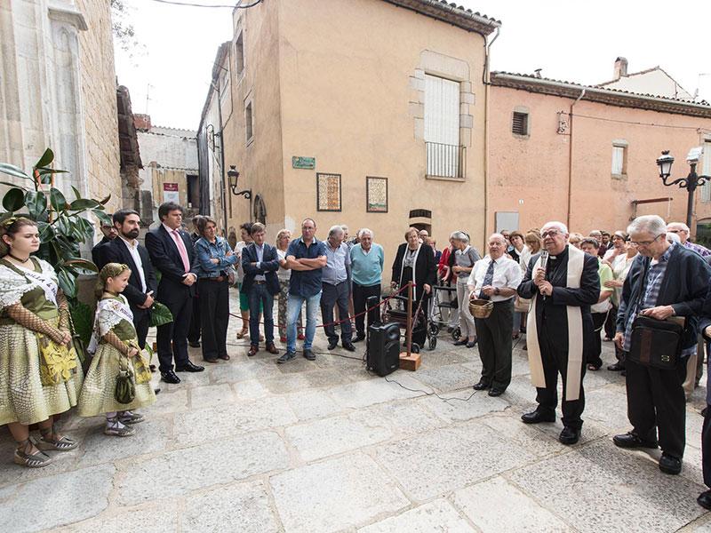 La benedicció ha estat a càrrec del bisbe de Girona, Mons. Francesc Pardo. La façana ha estat sotmesa a un procés de rehabilitació que n’ha millorat substancialment la imatge i que va finalitzar el mes d’octubre passat, després de tres mesos de treballs. Les tasques de millora han consistit en la consolidació dels suports pedra per a una estabilització correcta de tots els elements, així com una neteja integral de sediments, colònies biogèniques i morters de junta en mal estat de tota la façana, seguida de la consolidació dels diferents elements. En els punts on va ser necessari es va rejuntar el parament amb un morter específic per a aquesta mena de treballs.